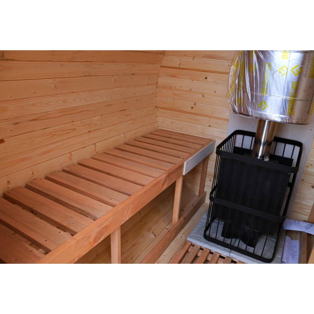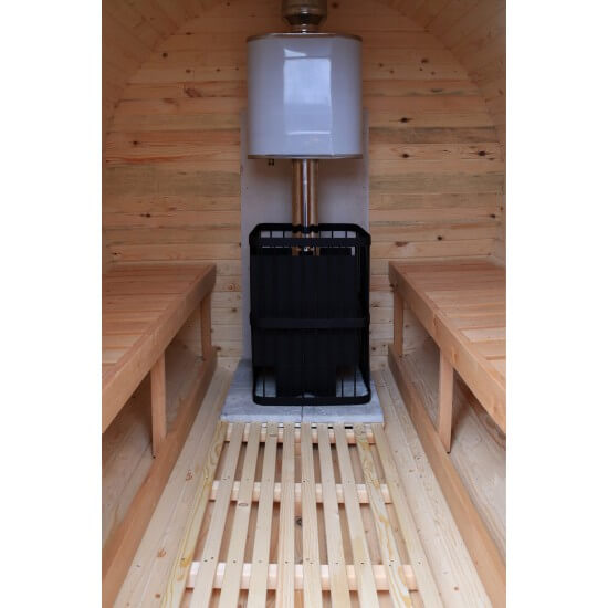 Эта модель бани-бочки — компактное одноместное помещение, идеально подходящее для отдыха небольшой компании. Внутреннее пространство комфортно для 2–4 человек, что позволяет сидеть или лежать (для двух человек).
