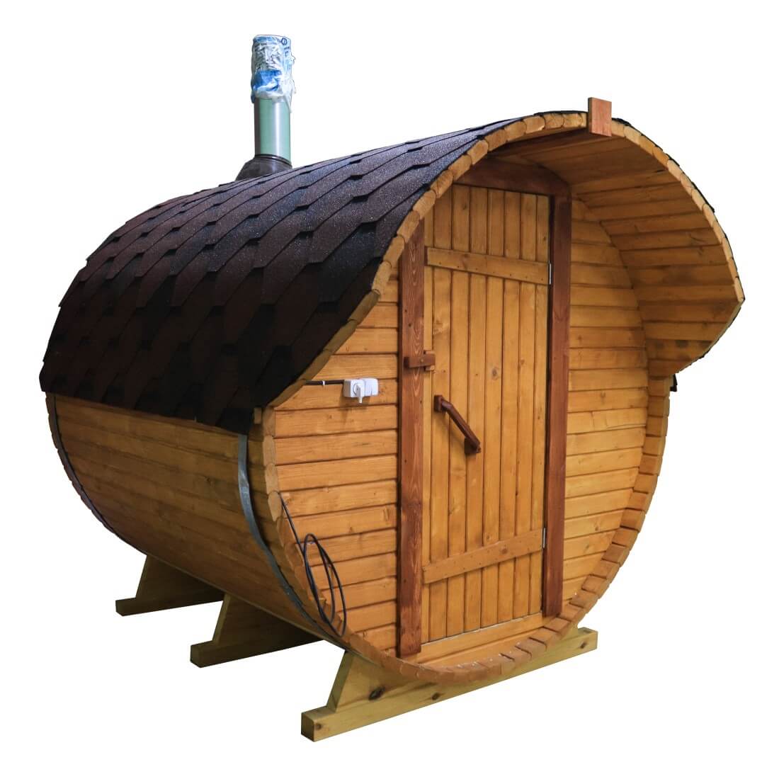 Баня-бочка длиной 2 метра — это мобильная альтернатива громоздким традиционным баням, отличающаяся компактностью и небольшим весом, что обеспечивает гибкость в размещении. Ее конструкция не требует строительства капитального фундамента, что значительно упрощает и ускоряет монтаж.