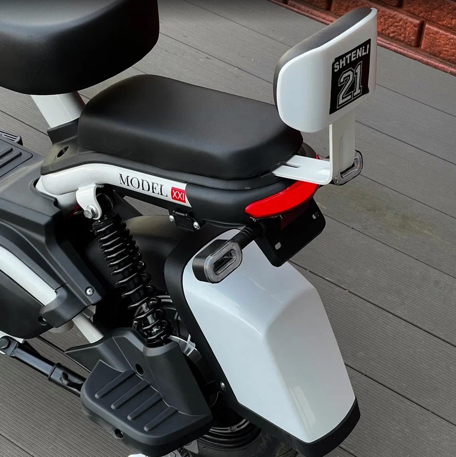 Shtenli Model 21 Performance Pro — двухместный полноразмерный электроскутер с аккумулятором 60V 20Ah и мотором 250W, рассчитанный на динамичную езду и увеличенную дальность пробега до 60–65 км. Мотор обеспечивает резкий старт и быстрый набор скорости, а 14-дюймовые колёса с широкой резиной дают высокую устойчивость на любых покрытиях. Скутер имеет просторную платформу для ног, мягкое широкое водительское сиденье и удобное пассажирское сиденье со спинкой. Прочная стальная рама выдерживает до 150 кг, позволяя комфортно перевозить двух взрослых. Передний и задний амортизаторы обеспечивают мягкую подвеску и комфортную езду по грунтовке, ямам и неровностям.