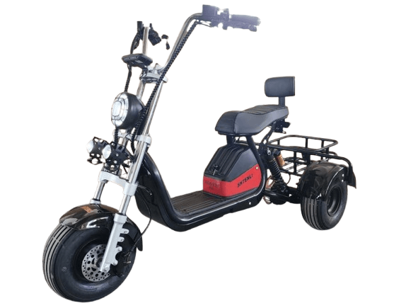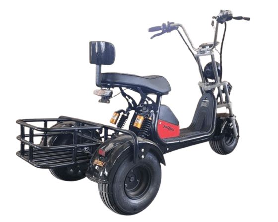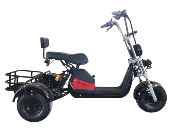 Shtenli Model 104 - это небольшой электроскутер трицикл с литиевым аккумулятором 48V12А, с дисковыми тормозами спереди и сзади, и с надежным гидравлическим тормозом.