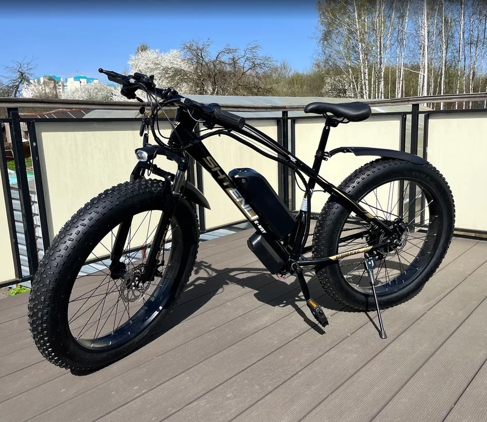 Электровелосипед оснащен колесами диаметром 26”х4.0 дюймов с камерной шиной мотоциклетной ширины.