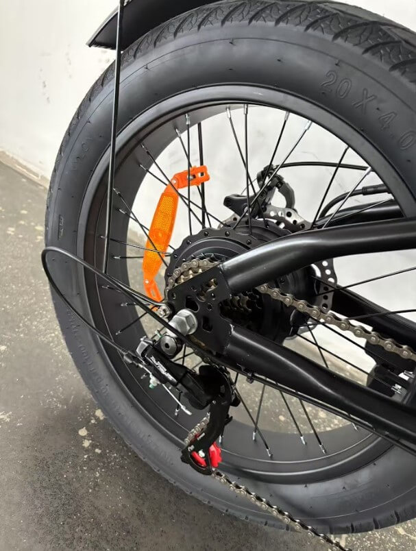 Электровелосипед оснащен колесами диаметром 20 дюймов. Мотоциклетная резина помогает амортизаторам сделать езду более комфортной, также она с легкостью вытягивает электровелосипед из песка и грязи и делает езду безопаснее в гололед. Прямая посадка исключает быструю утомляемость рук, что делает прогулки на Shtenli Apache X PRO сплошным удовольствием.