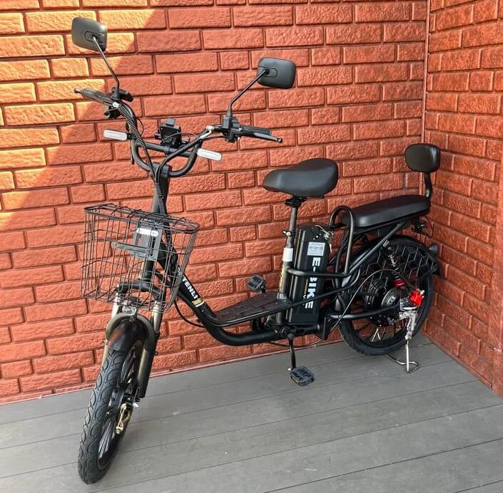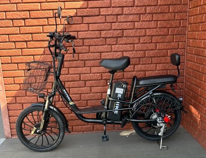 Для перевозки вещей электровелосипед оснащен вместительной корзиной.