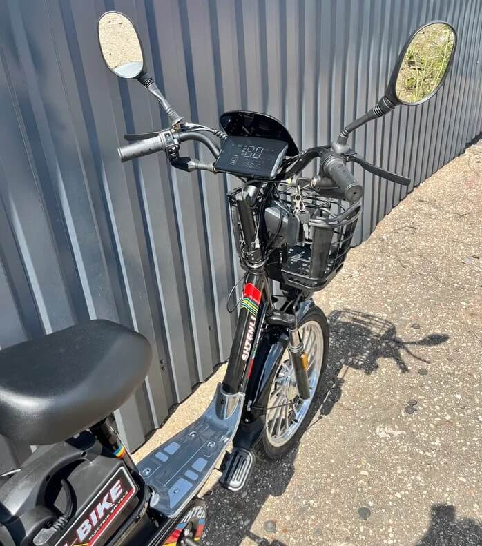 Для перевозки вещей электровелосипед оснащен вместительной корзиной.