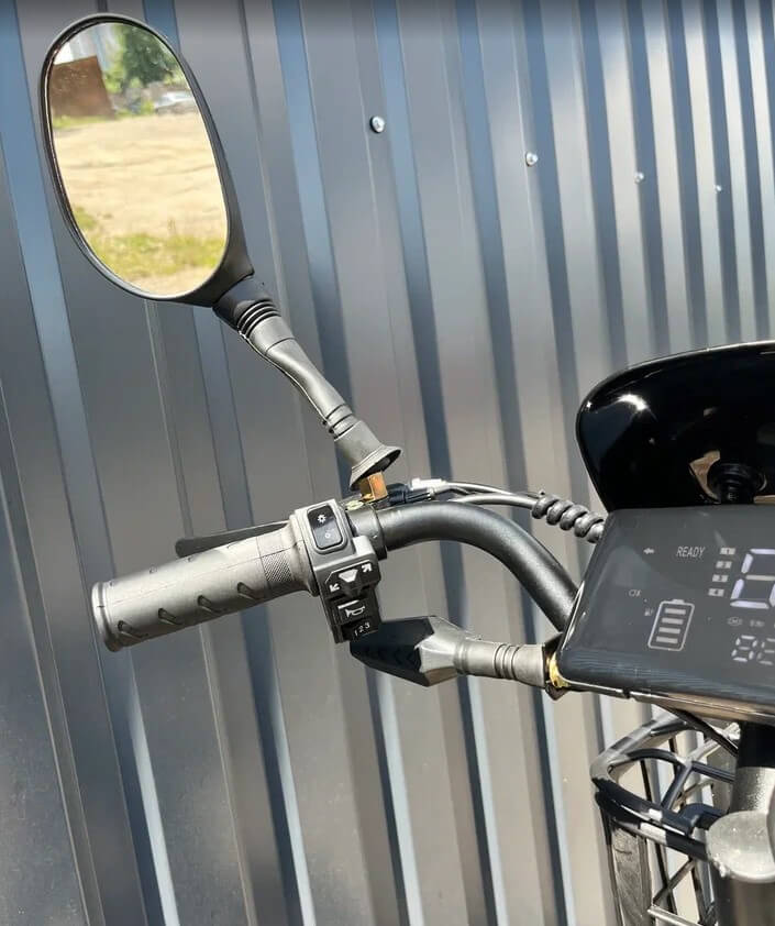 На руле расположен информационный дисплей (он в отличие от многих велосипедов тут не велосипедный а мотоциклетный, он большой, цветной, стоит по центру руля), который отображает уровень заряда батареи, пробег, скоростной режим, там же на руле есть звуковой сигнал, ручка газа.