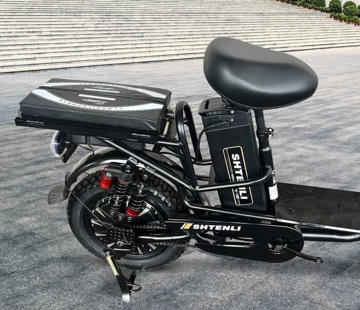 Электровелосипед оснащен колесами диаметром 16 дюймов. Мотоциклетная резина помогает амортизатору сделать езду более комфортной, также она с легкостью вытягивает электровелосипед из песка и грязи и делает езду безопаснее в гололед. Прямая посадка исключает быструю утомляемость рук, что делает прогулки на Shtenli Fedbike RKS сплошным удовольствием.