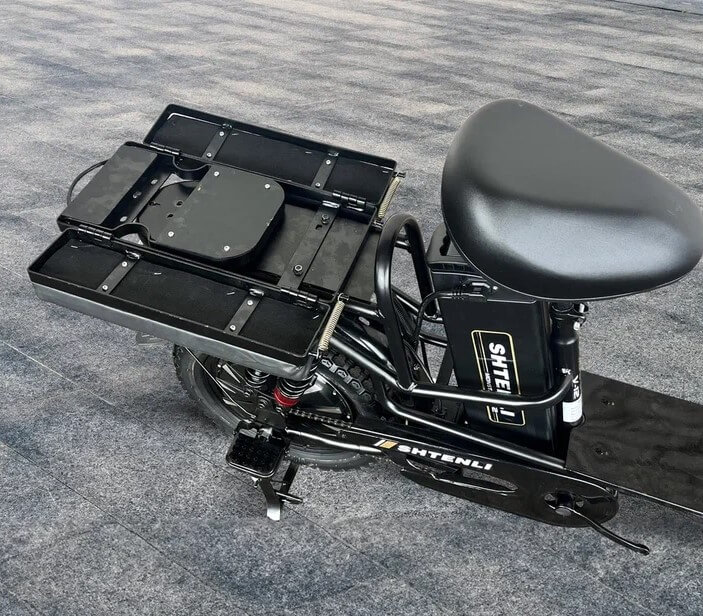 SHTENLI Fatbike RKS это складной электровелосипед, подходящий для эксплуатации как в городе, так и по пересеченной местности. А передняя амортизация сделает езду по бездорожью максимально приятной и комфортной. В сложенном состоянии он не занимает много места, а в разложенном он большой полноразмерный велосипед с толстой крепкой рамой.